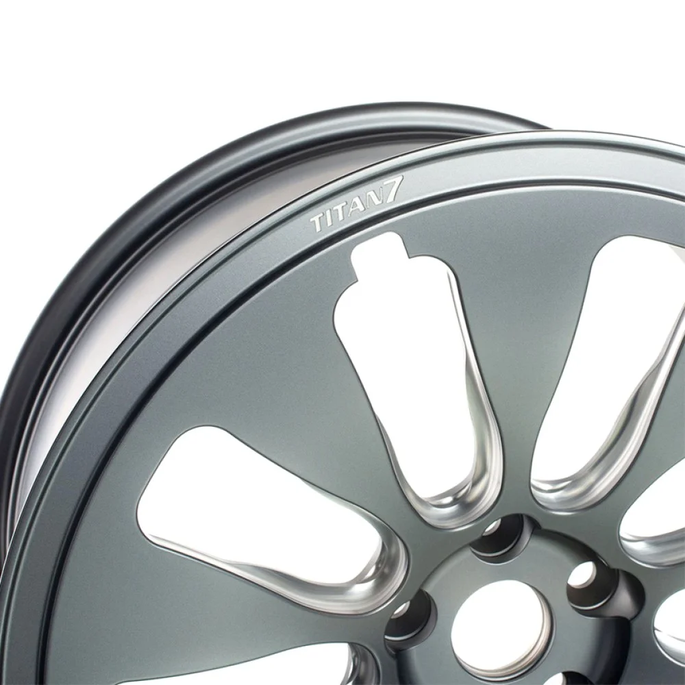 TITAN 7 T-LD1: Titan 7 is a wheel company that doesn’t just strive to do things differently, we do it with logic and purpose. One prime example is that we tailor each fitment car specific. No secret code graphs and charts – We took it to the next level with the T-LD1 by producing a fully forged wheel that is not just limited to low weight and strength. In order to achieve the best efficiency, we addressed aerodynamic efficiency in order to give the best chance for the best miles per charge in a large diameter wheel. We designed a large amount of surface area to reduce drag while painstakingly machining the inner spoke to reduce as much weight as possible while keeping the wheel strong. We’re serious about performance and we want to do our part in providing positive products for the Electric Vehicle market. We invite you to experience what “Forged For All” is really about.